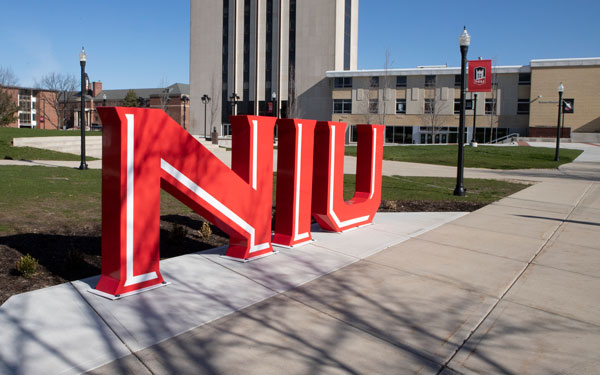 The “Huskie Pride” sculpture was unveiled in October 2019. Comprised of the letters N-I-U in 6-foot-tall block type painted in the university’s signature cardinal red, the sculpture sits in the center of the Martin Luther King, Jr. Memorial Commons on the university’s DeKalb campus.